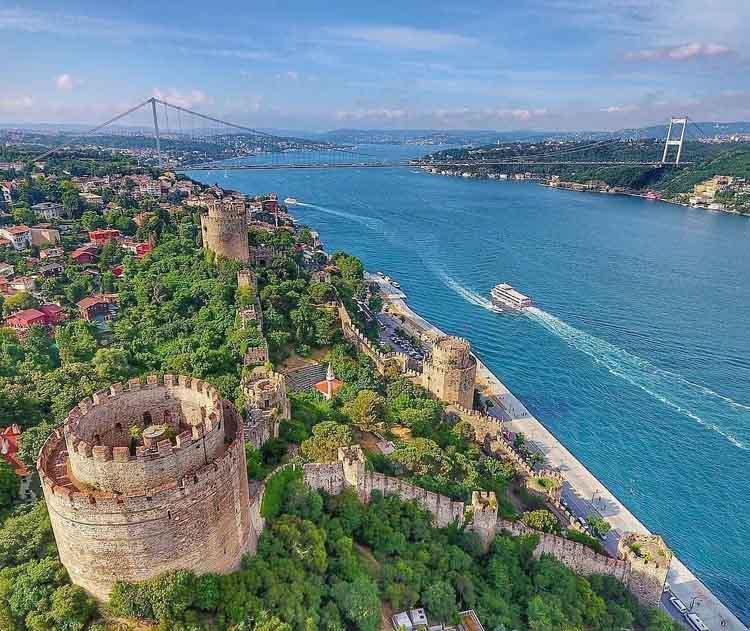 La forteresse de Rumeli s’élève de manière spectaculaire sur la rive européenne.